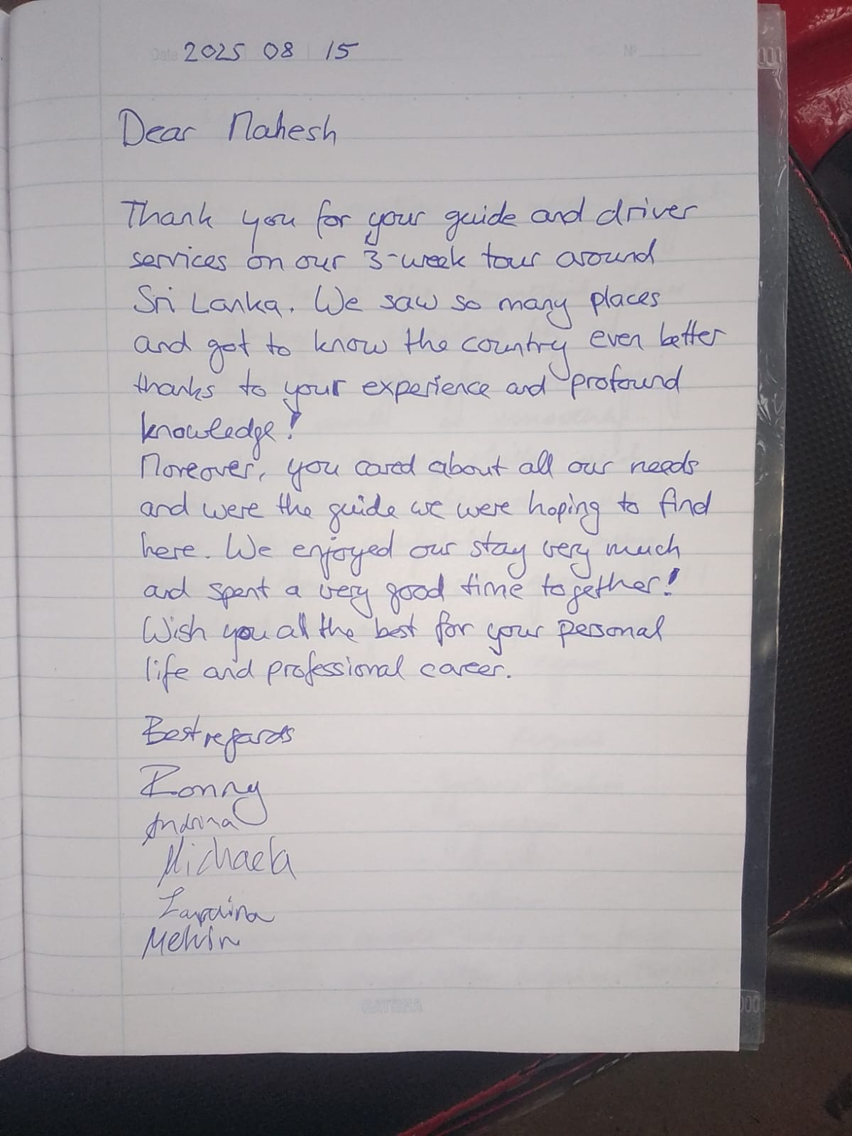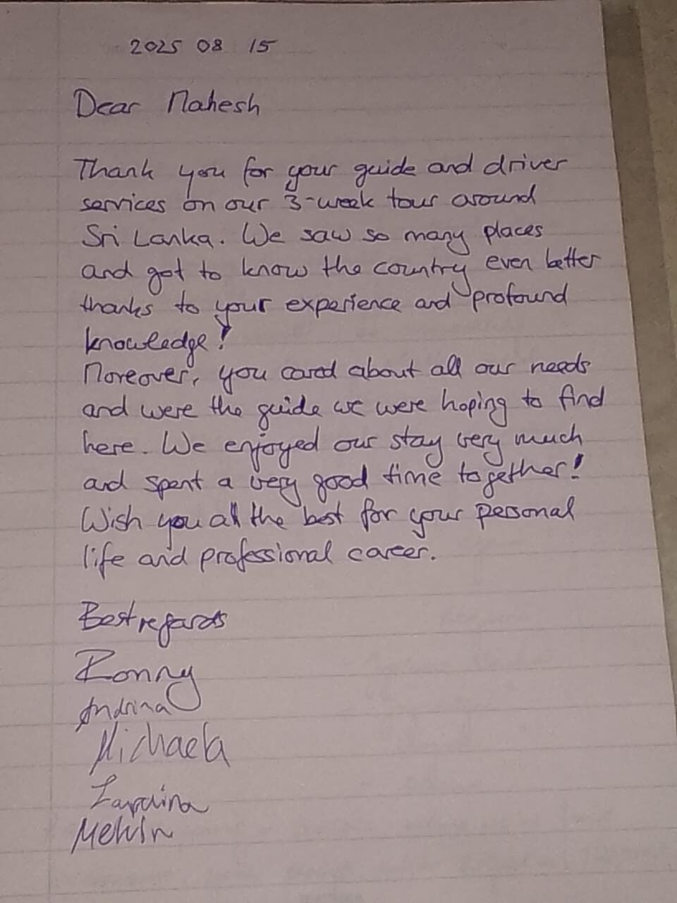 Mahesh made our trip to Sri Lanka seamless. Clean vehicle, safe driving and kind to deal with